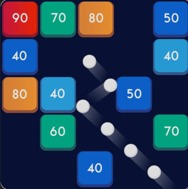 Balls and Bricks は、ボールを狙って発射し、下へ迫る番号付きブロックを破壊していく物理シューティングゲームです。壁に反射させたり、狭い隙間へ通したりして、できるだけ多くのヒットを稼ぎます。