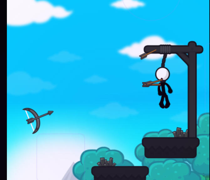 - 【ゲームの目的】ロープや周囲のオブジェクトを撃って、トラップに捕まったスティックマンを助ければステージクリアです。味方に当てたり、救出前に落下させたりしないよう注意しましょう。