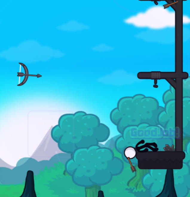 無料で遊べるスティックマン救出アーチェリーゲーム。弓矢でロープを狙い撃ちし、トラップから仲間を助け出そう!